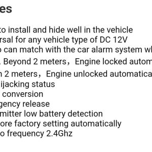 | Model | Engine Immobilizer, 2.4GHZ Engine Immobilizer Anti-Hijacking Alarm System Intelligent Circuit Cut Off Universal for DC12V Vehicles Pro Series |